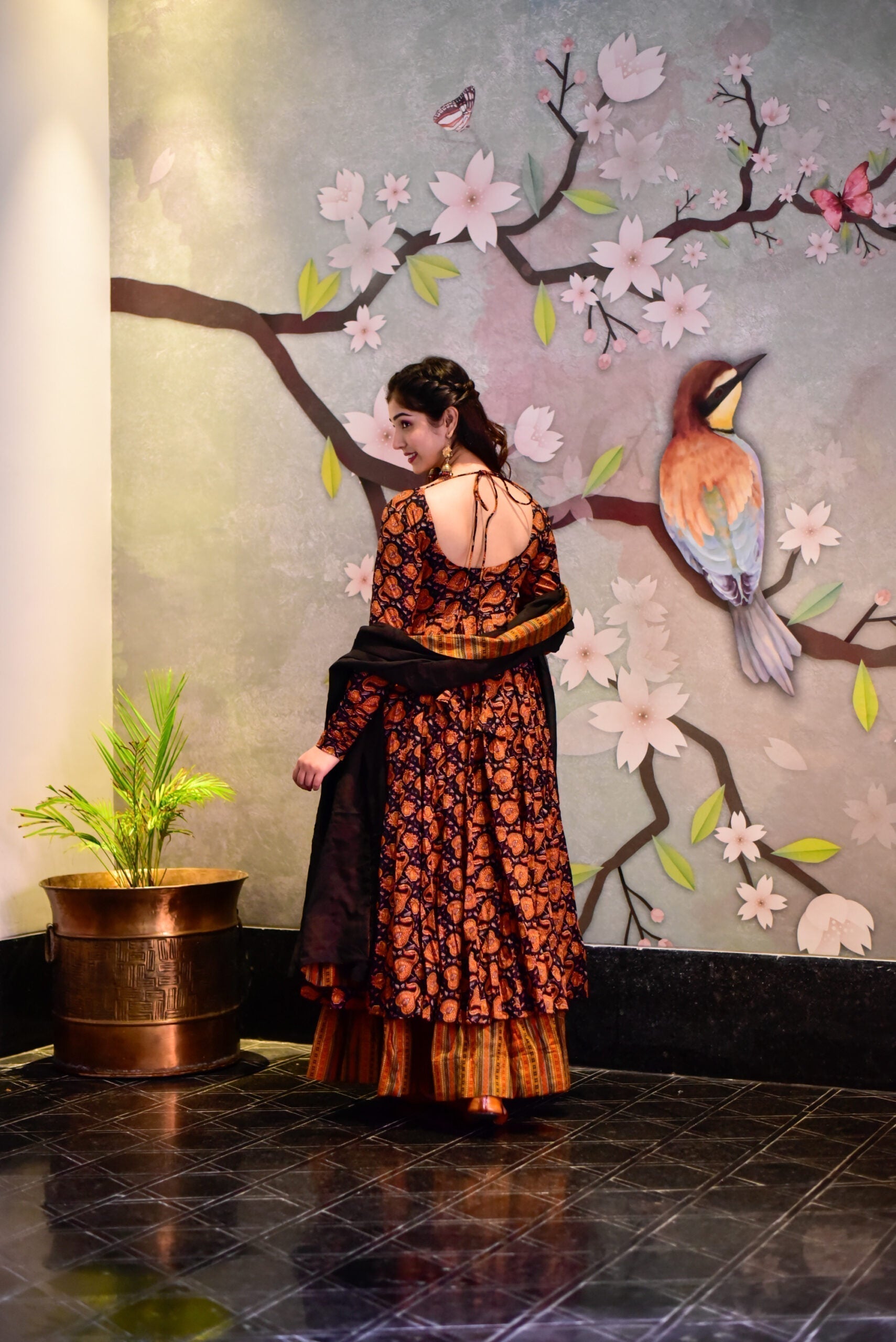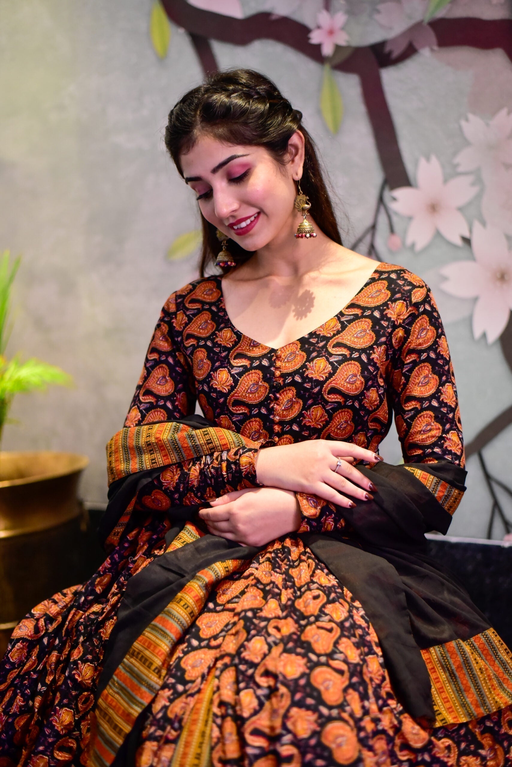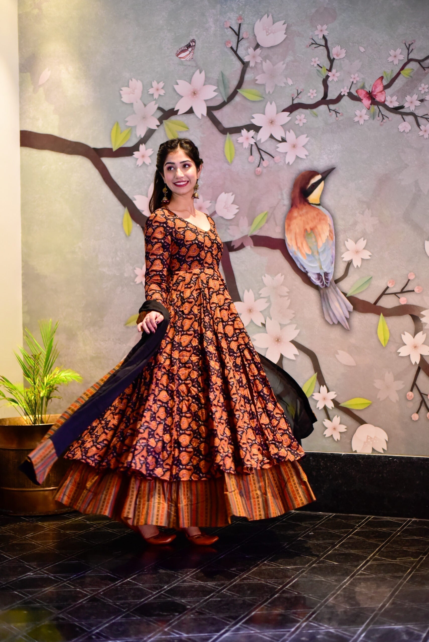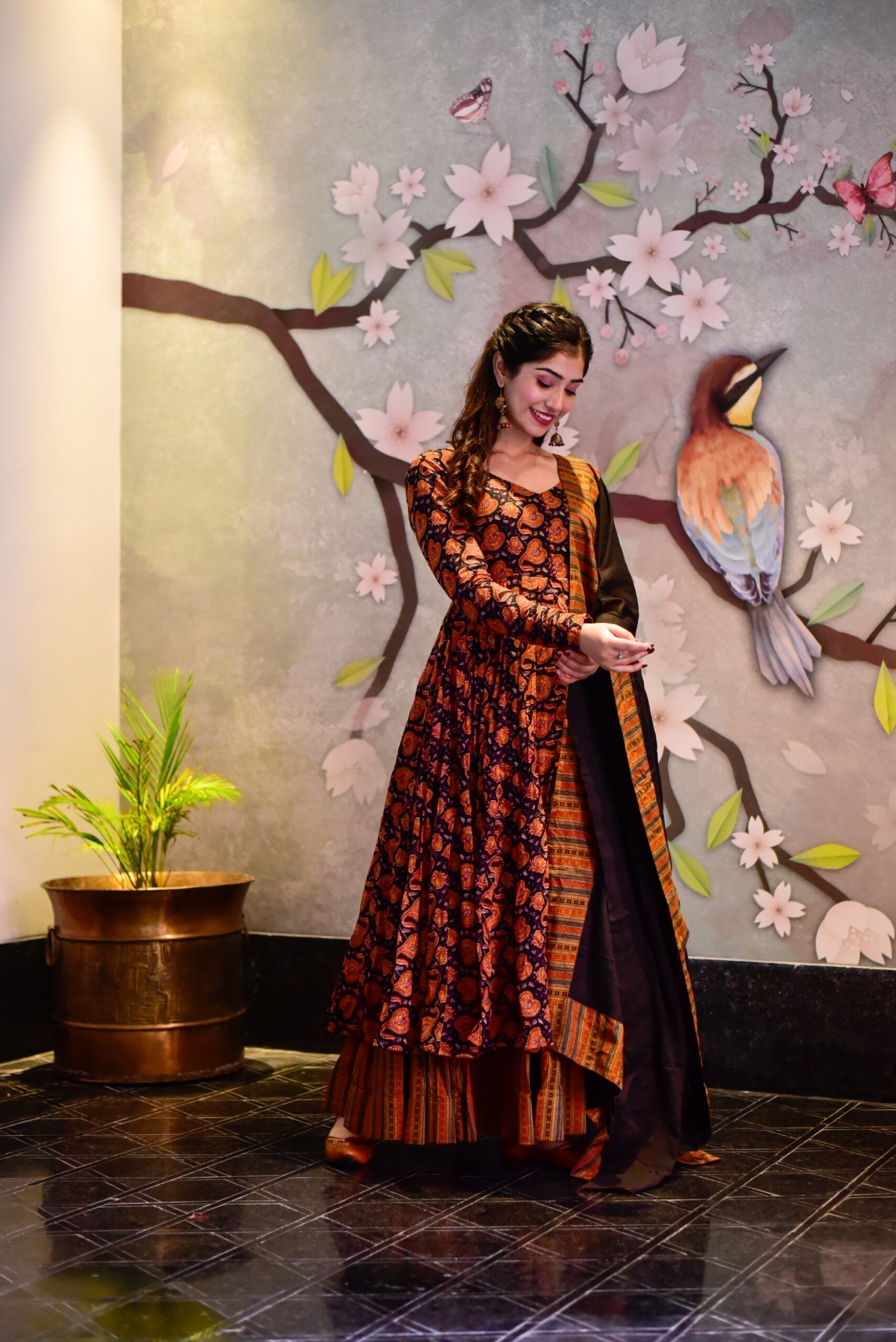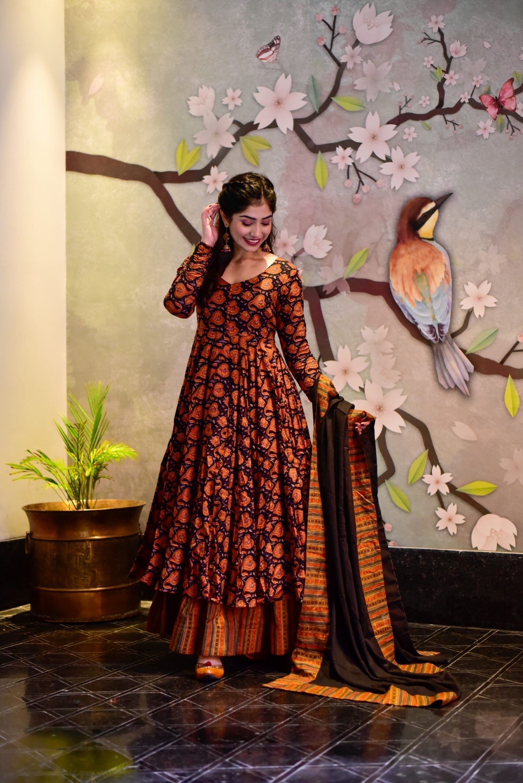 Adorn your beautiful self with this rich printed ethnic attire accompanied by a bold dupatta to beautify the festive look.!