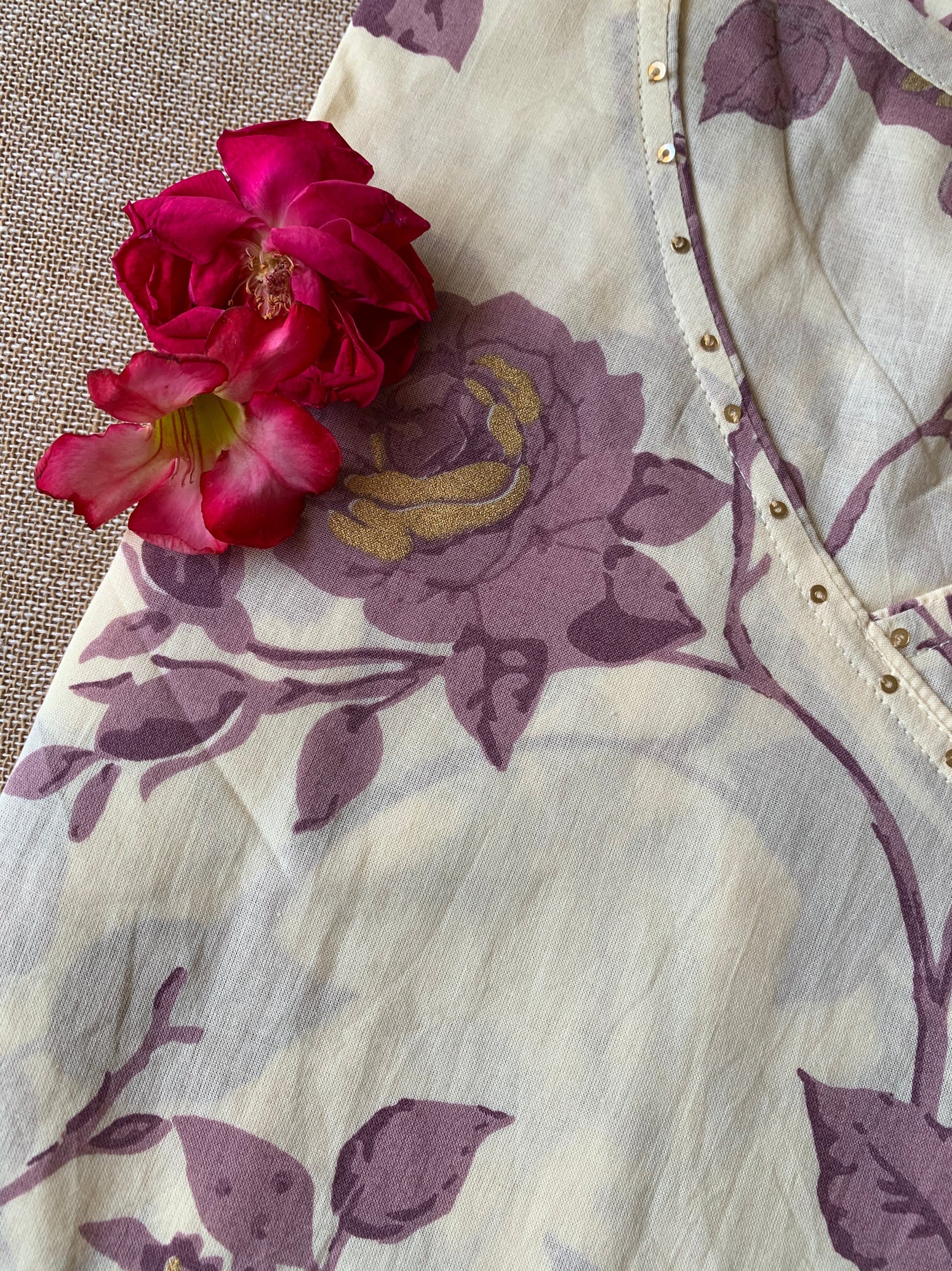 Cream Purple "Gold" Angrakha Cotton Kurta