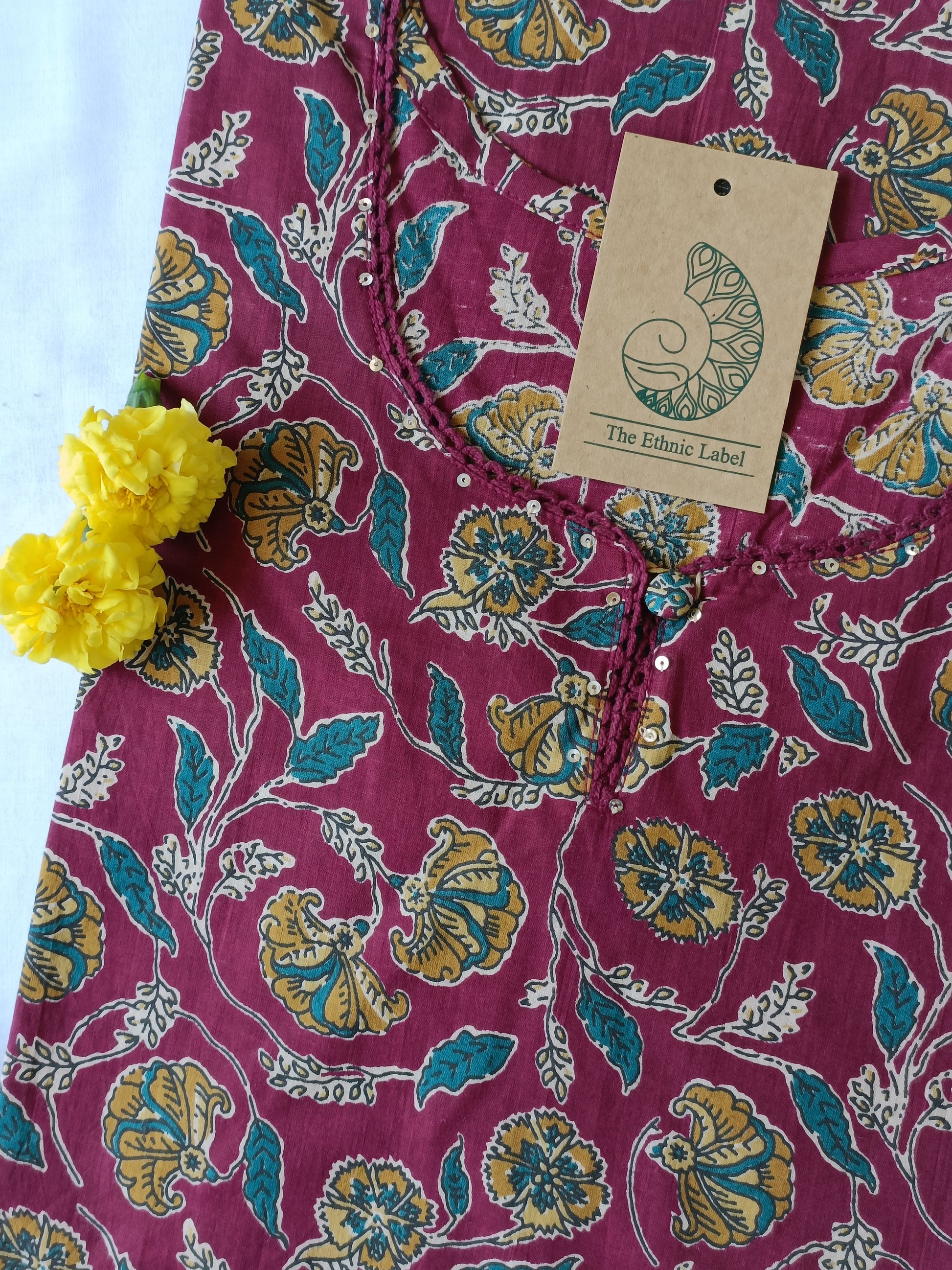Hand Block Printed Majenta Jaal Cotton Kurta