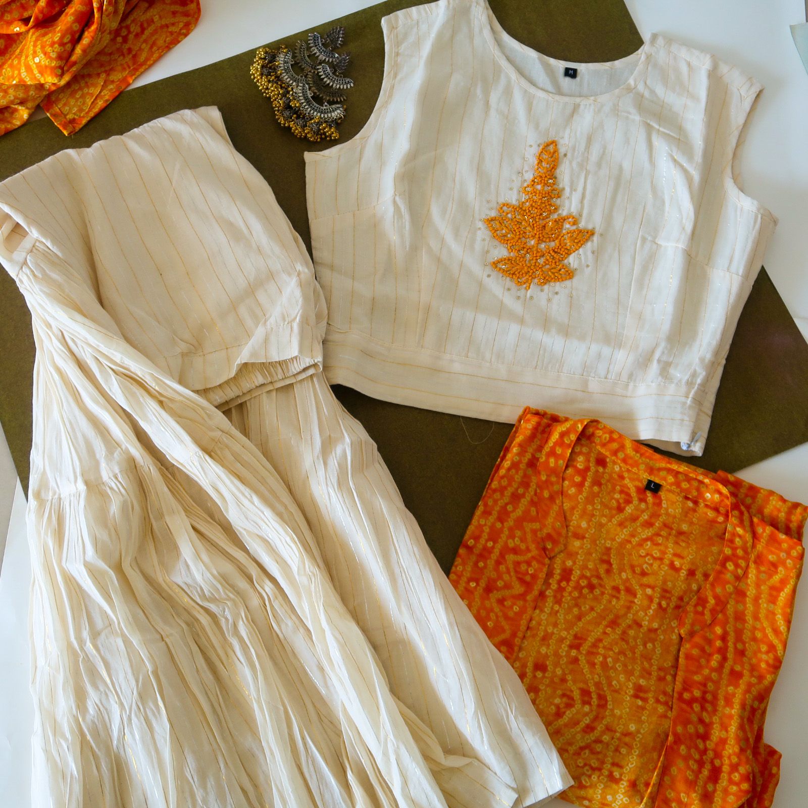 Special ocassions deserves elegant ensembles such as our Exotic Cotton Lurex Crop Top & Sharara with Jacket.