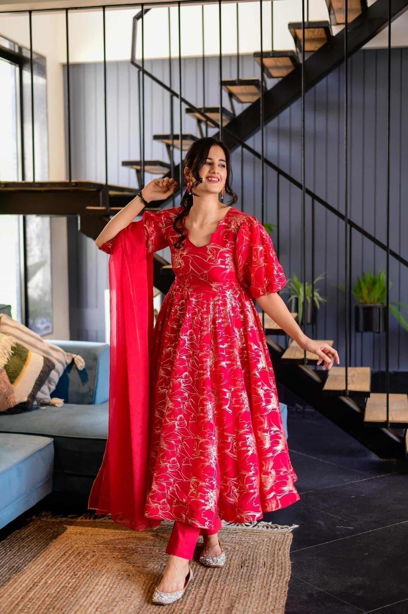 magenta pink organza suit set