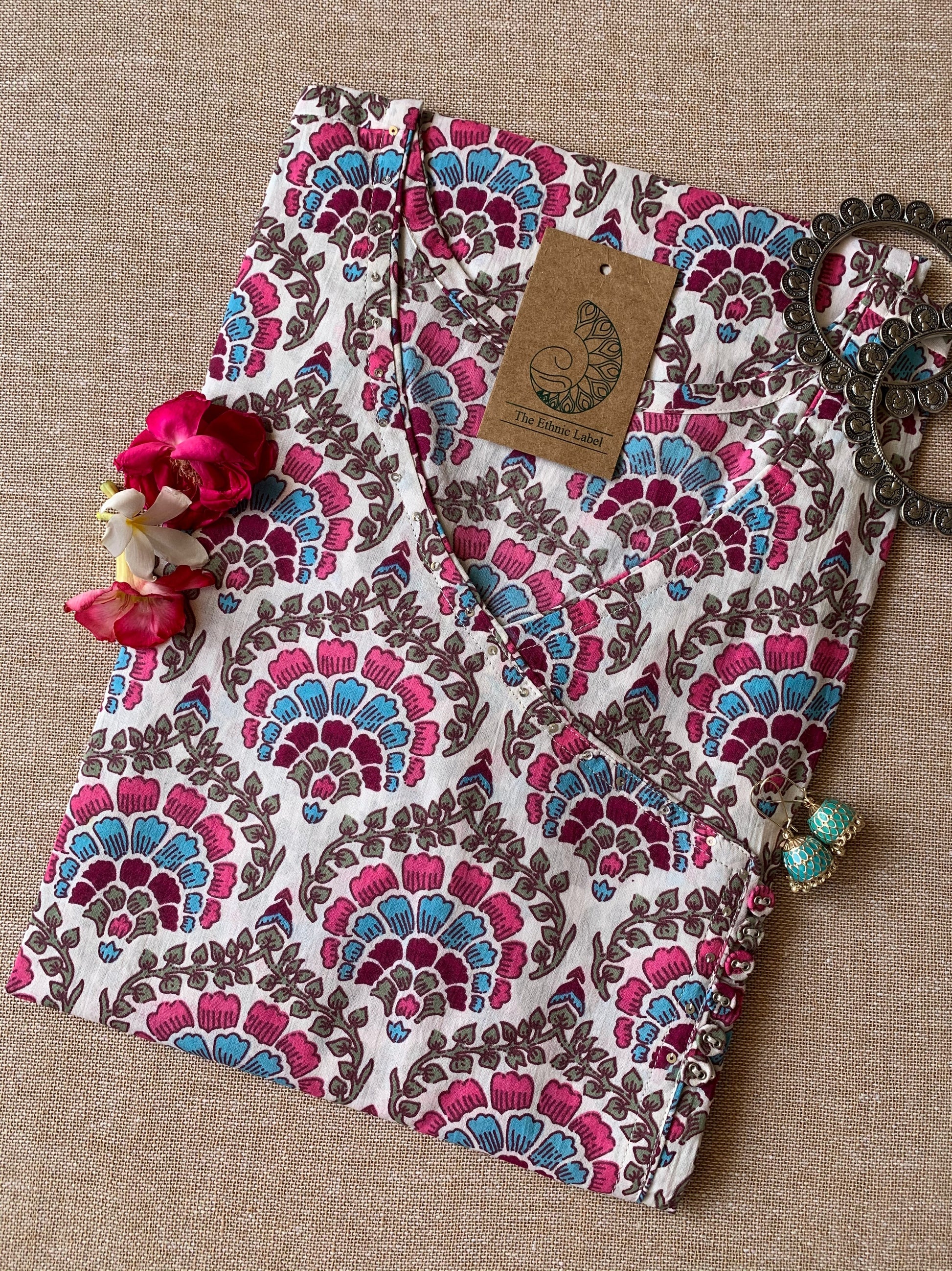 "Orchid" Blue Pink Angrakha Cotton Kurta