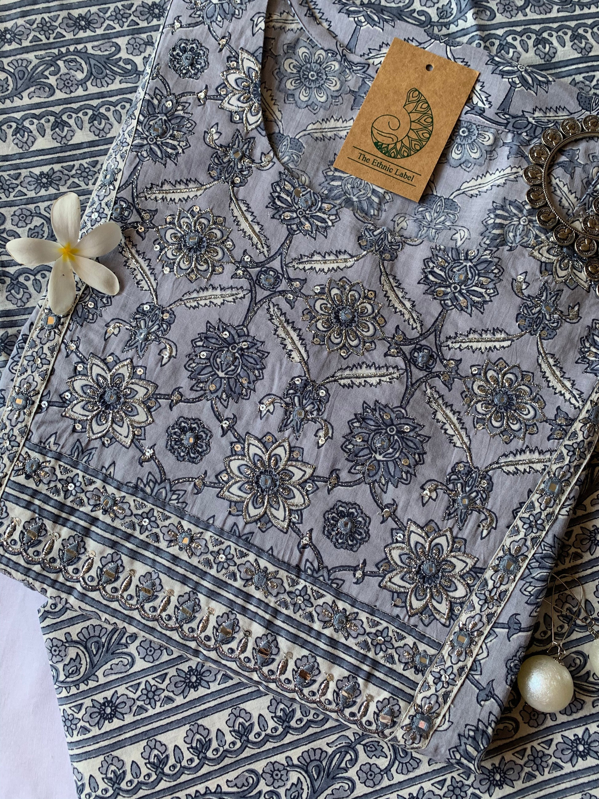 Minimal, classic and chic, this kurta set is designed for all the days you want to keep things special and subtle. Inspired by the art of Hand Block Printing, this kurta set is a piece of art. The kurta set comes with a unique print that gives an elevated touch to its royal colour and pure cotton fabric.