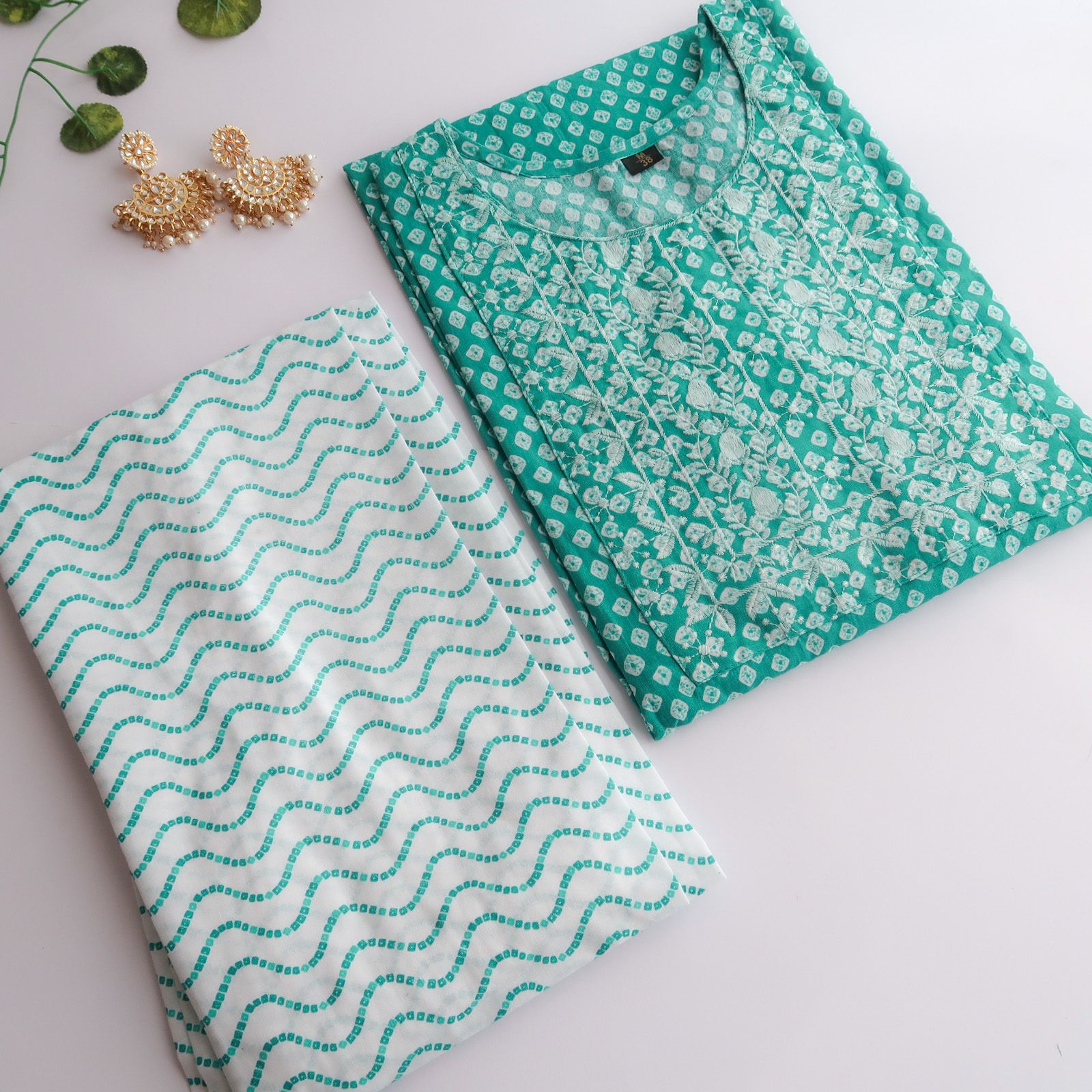 cotton kurta with cotton pants, Half drawstring and half elastic closure.