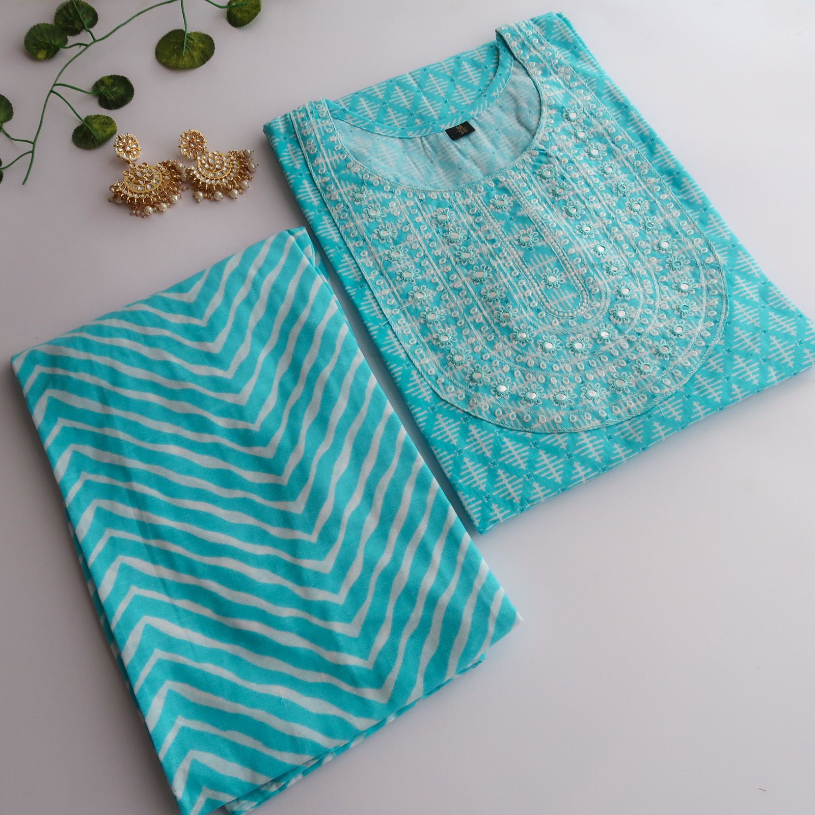 cotton kurta with cotton pants, Half drawstring and half elastic closure.