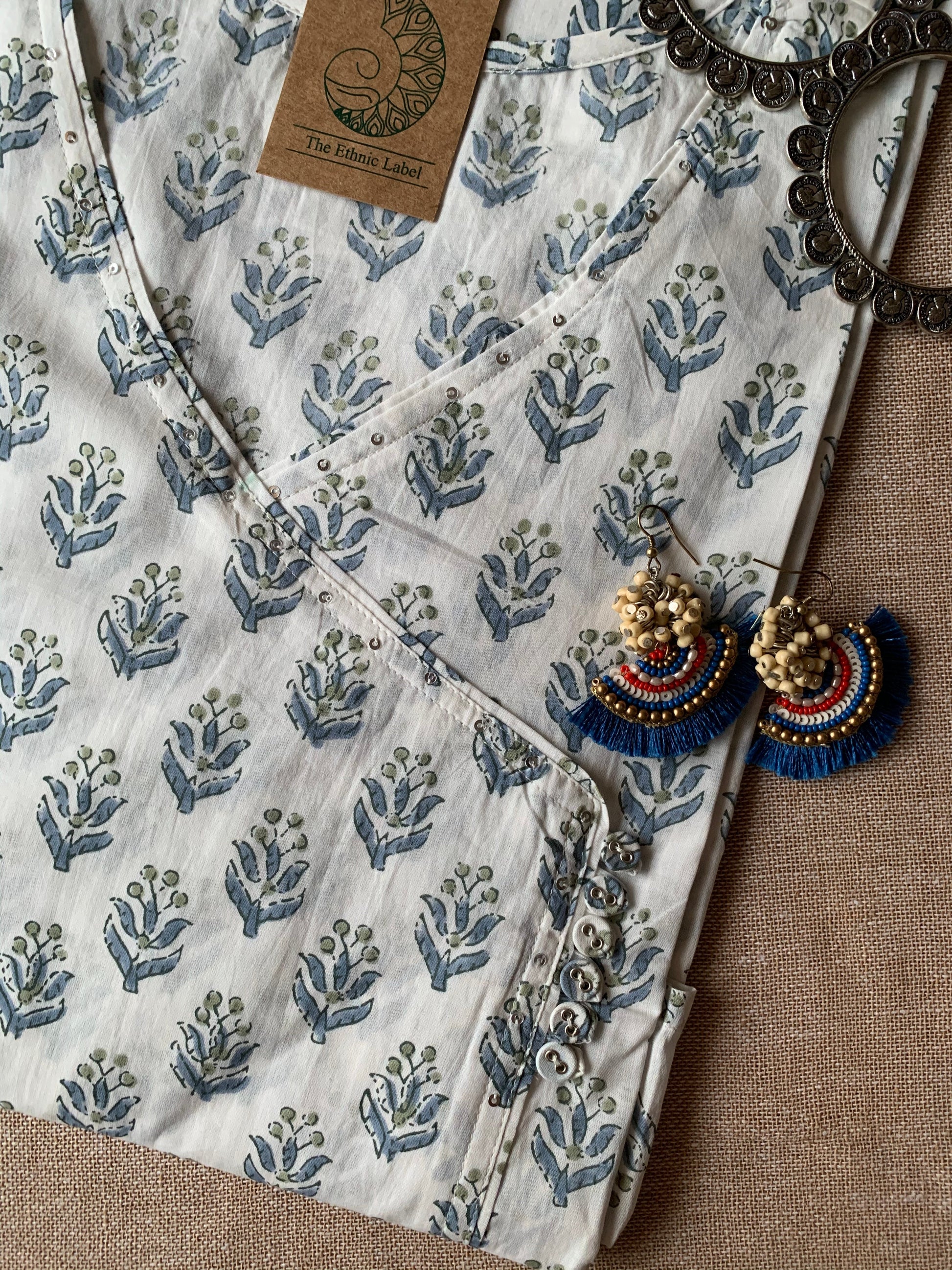 "Tulip" Hand block printed Angrakha Cotton Kurta - Big Size